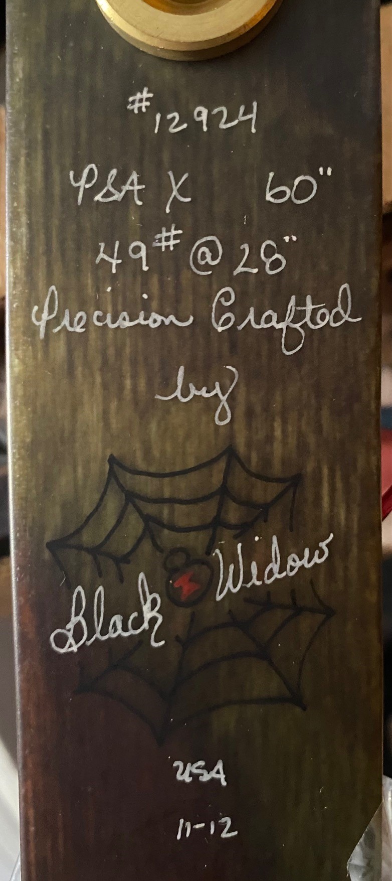 Black Widow Custom PSA-X Recurve with 3 limb sets. I had this bow built for me and now a rotator cuff issue keeps me from shooting it. So, I am electing to part with it. The Kingwood riser has Black Widows standard right-hand grip. I had it built with 60" limbs that are 49# at 28". I later had made 62" limbs made, one set 53# @ 29" and other set 60# @ 29". I shoot with sights, so the Montana Gold sight is optional. Comes with Take-Down soft case and a new, never used Americase Take-Down Bow and Arrow travel case. This package would sell for $3,500+ new. Will part with it for $2,250.
