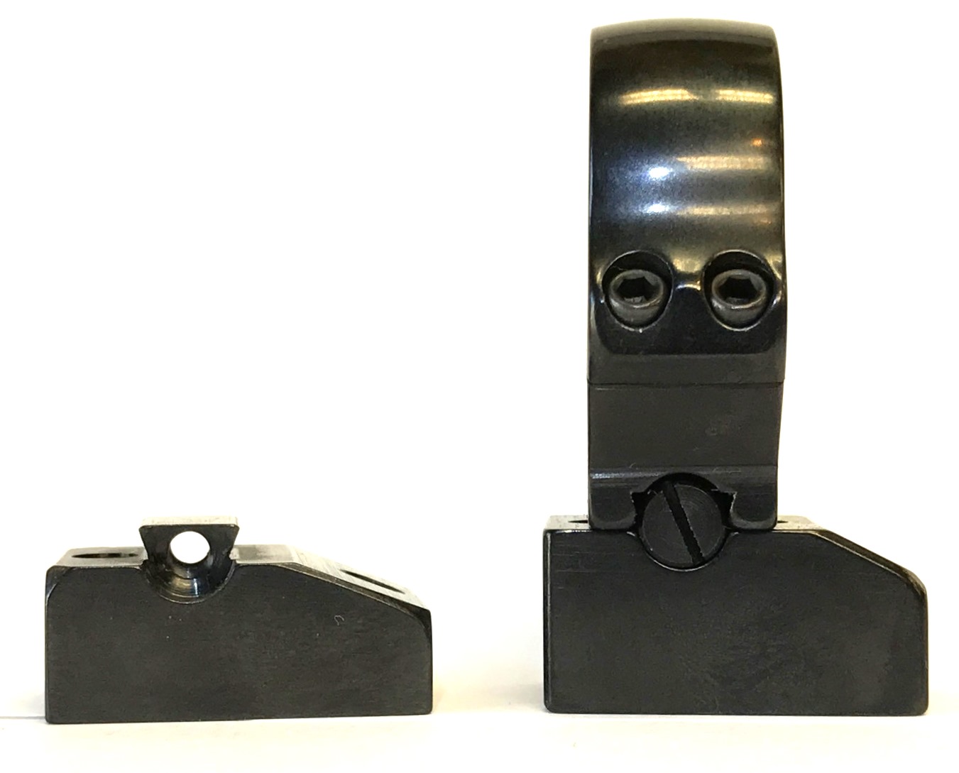 We are all accustom to the old standard "Redfield" and "Leupold" mounts that have a rotary front ring and a rear ring held in place by two large windage screws. Well those two large screws are actually only holding onto a small tab of soft steel. Many gunsmiths and gun owners tend to over tighten these screws to secure the ring. Well this tightening actually creates more issues. The tightening process bends the small tabs down in such a way that the rear ring will only be resting on the point of these two tabs. This greatly reduces the ring surface to base area and its ability to hold the scope in place under all that vibration. I have often referred to these mounts as "One Season" mounts. The guy buys a new gun. He mounts a scope with the "old standard" mount. Gets the gun sighted in, if he is lucky enough, then hunts. It's the next fall when he pulls the gun out and starts checking his zero that things go a stray. What will first happen is his point of impact will shift, often time stringing up and to one side of the other. Then groups become erratic and all over the place. If not caught in time scope damage occurs, as the rear ring will release itself from grip of those two large screws and the soft steel post in the front ring gives way......